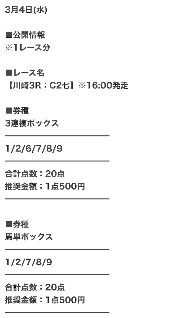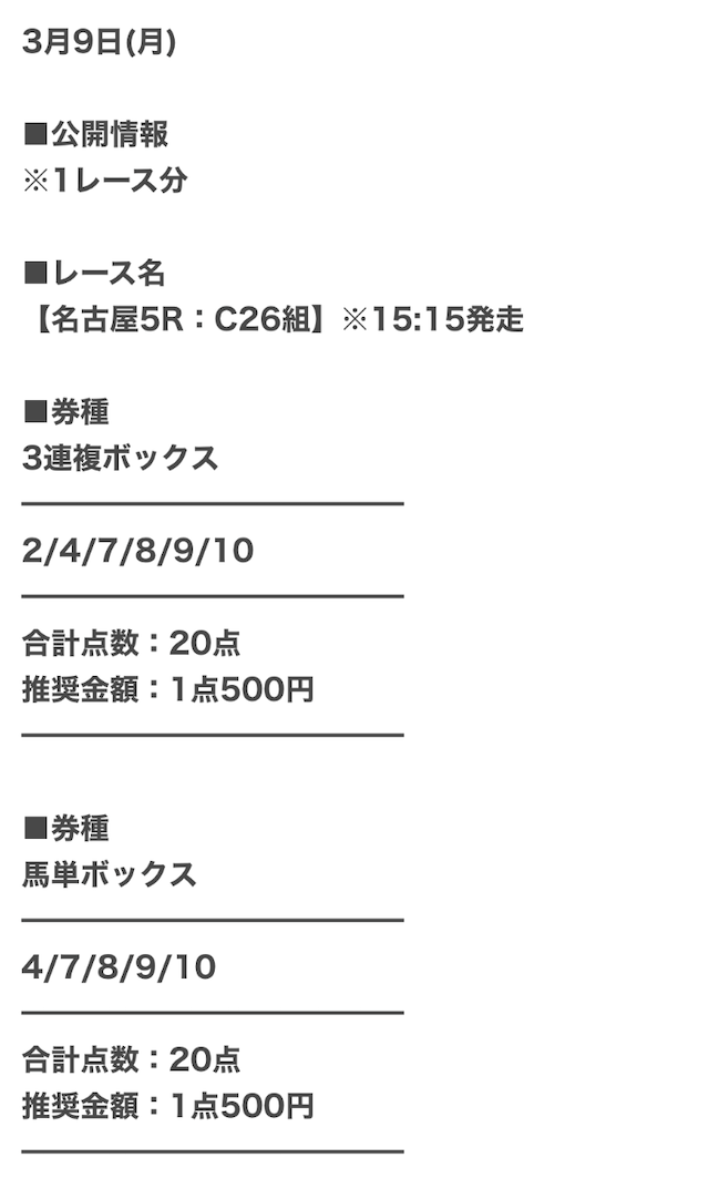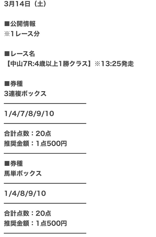 推奨通り1点1,000円の合計10,000円で勝負。