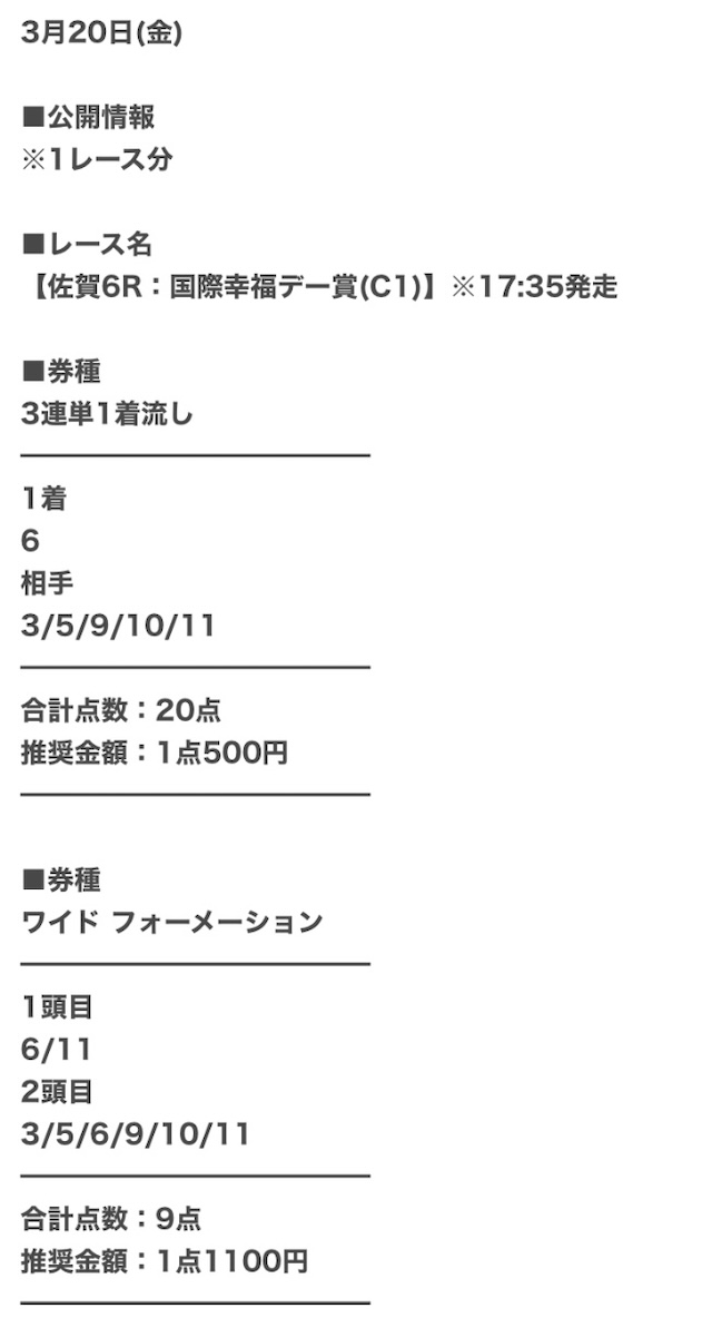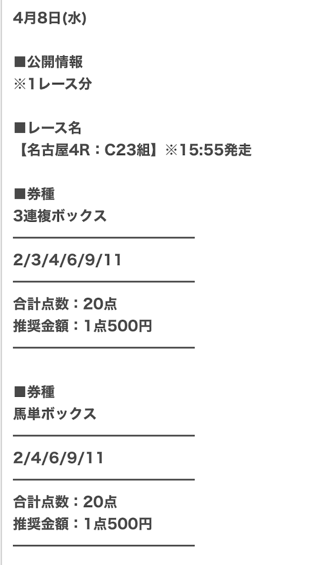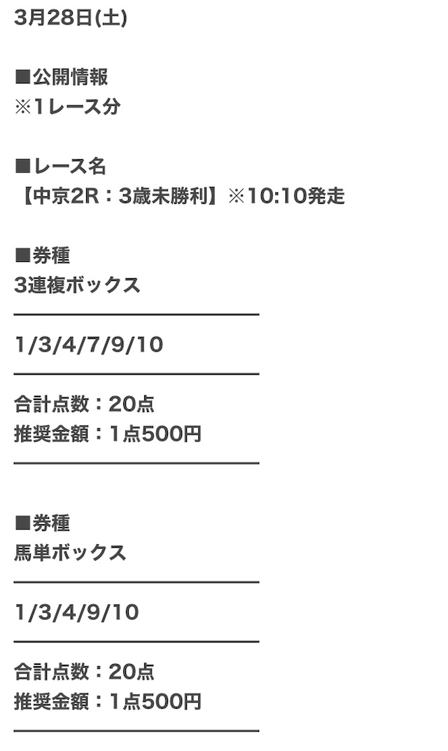 | 公開日時 | レース当日10時頃 |