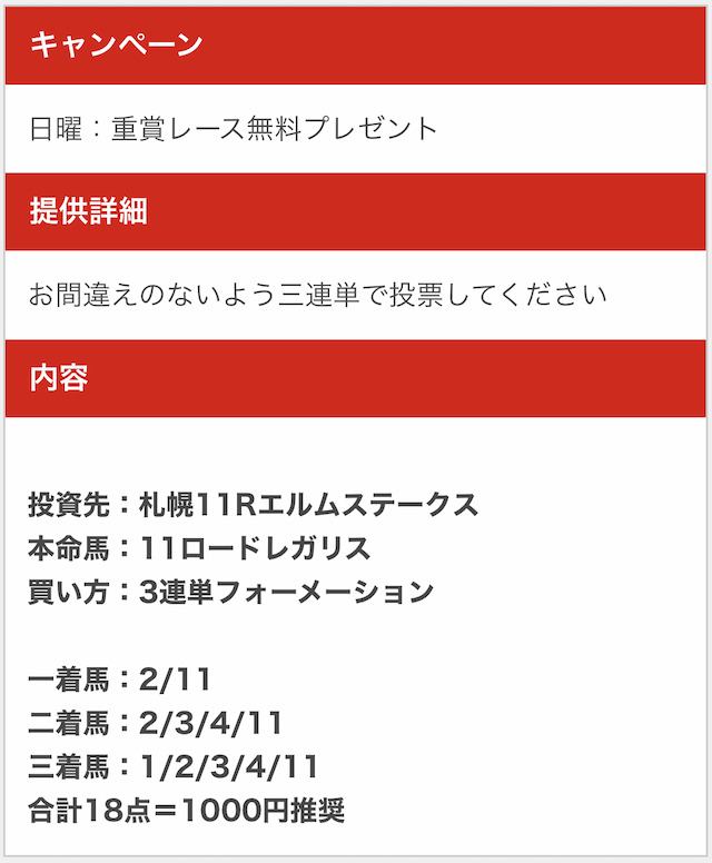 まずは無料予想で当たるかどうかが重要ですが、無料予想で軍資金が溜まった際はこれらのキャンペーンに参加するのも良さそうです。
