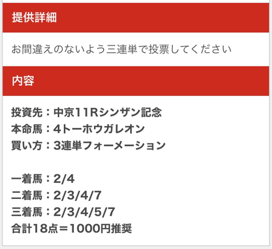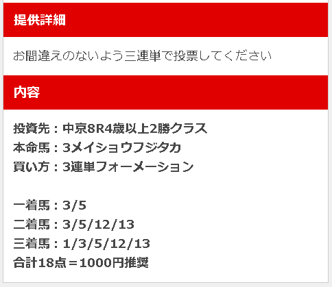 とはいえ、先程のレースも穴馬の好走を見事読み当ててくれただけあって、安心感と期待値が違いますね。