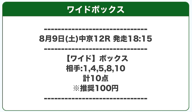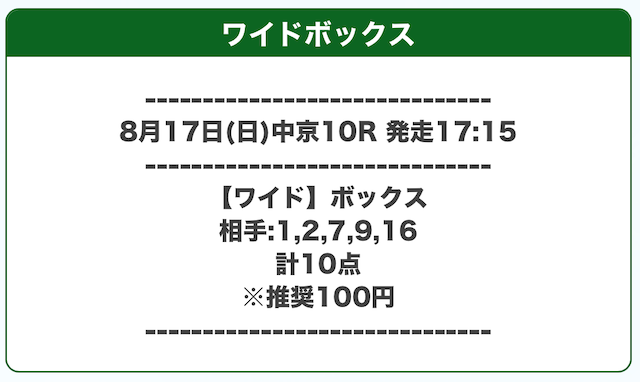 推奨投資金額 | 1点100円(合計1,000円) |