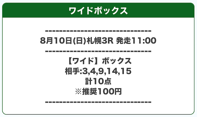 ※公開される買い目の例