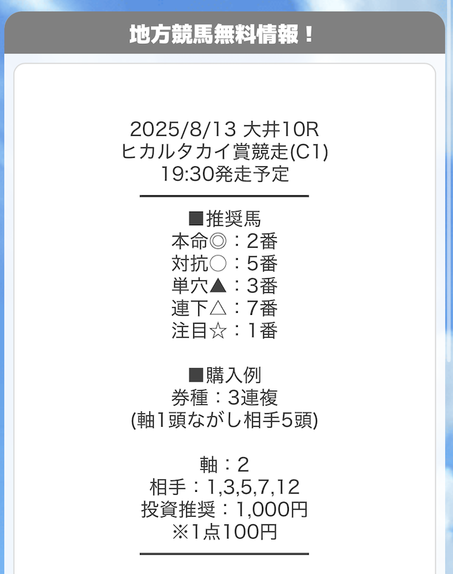 - 2025.08.16無料予想で5連敗した