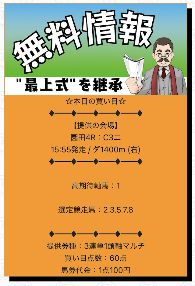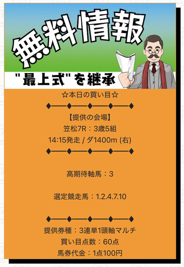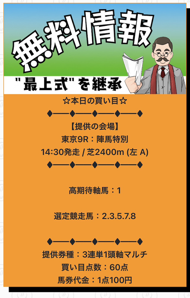 本検証を経て最上式勝馬投票券が気になった方はぜひ、一度買い目だけでも受け取ってみることをおすすめします!