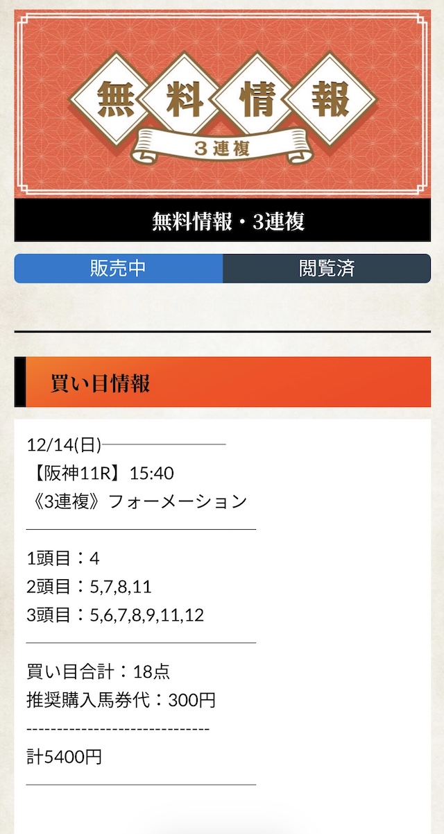 有料予想の戦績