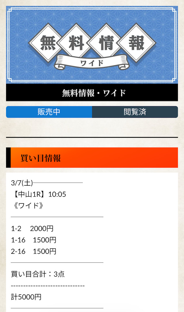 有料予想の戦績