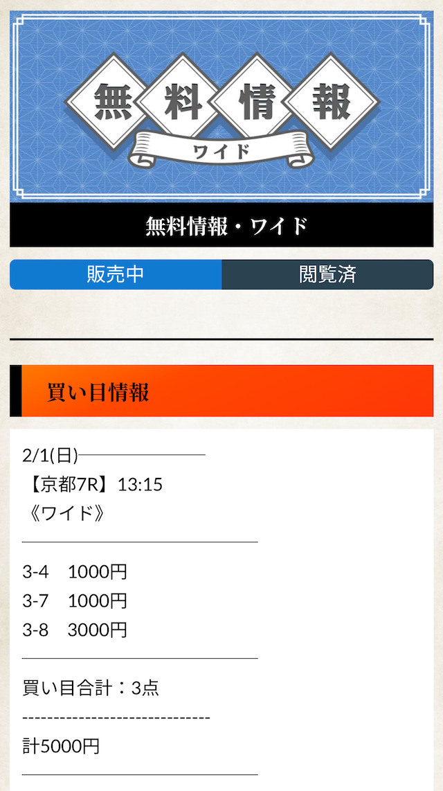 ニックネーム登録するとポイントが貰えるキャンペーンがあって、有料情報を無料で見ることができる!私が参加した時はこの予想で30万円の払い戻しになって、今はその資金を元に有料プランに参加してます!